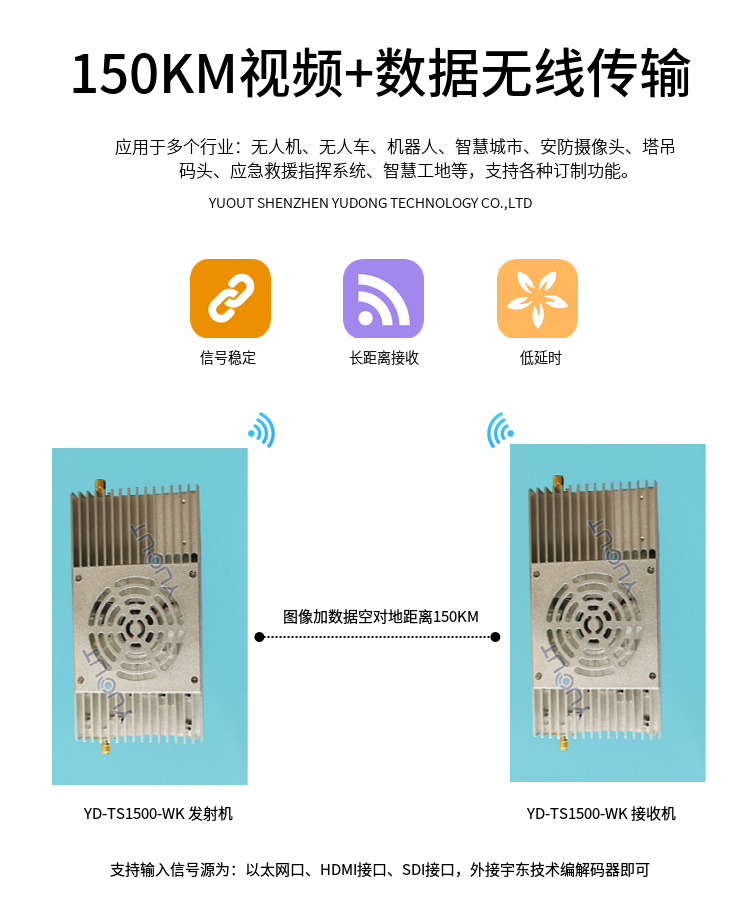 YD-TS1500-WK  是應(yīng)用于無人機行業(yè)的圖數(shù)控一體化超遠距離無線傳輸設(shè)備(最遠可達 15至20 公里),具有體積小、功耗低、通信距離遠等特點,支持高清視頻、飛控數(shù)據(jù)、云臺控制數(shù)據(jù)、遙控器控制數(shù)據(jù)等同時傳輸。