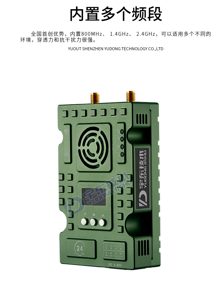 9、內(nèi)置三個(gè)無線頻率:800MHz、 1.4GHz、 2.4GHz 液晶可設(shè)置