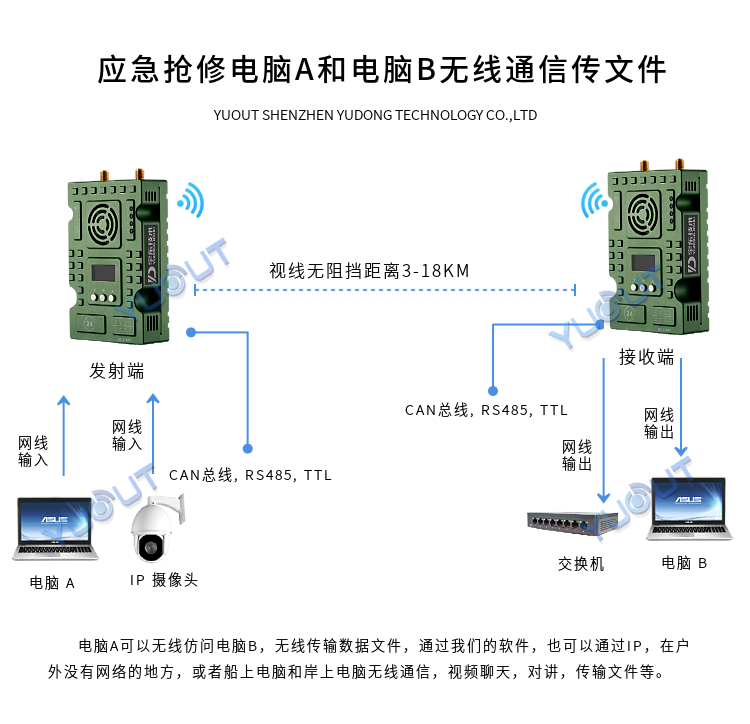 無線傳輸距離非視距:300-900 米  地面視距:2-18 公